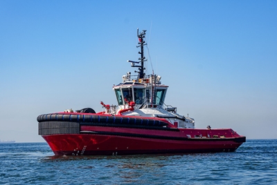 Based on the exclusive RAscal 1800 design from Canadian naval architects Robert Allan Ltd developed to address the challenges of modern, high-performance Z-drive line-handling, Sibba has a LOA of 18.7m, a moulded beam of 9.2m and depth of 3.5m. It is powered by two Caterpillar C32 main engines, each producing 970 kW at 1.800 rev/min to achieve a bollard pull of 32 tons and a speed ahead of 12 knots.