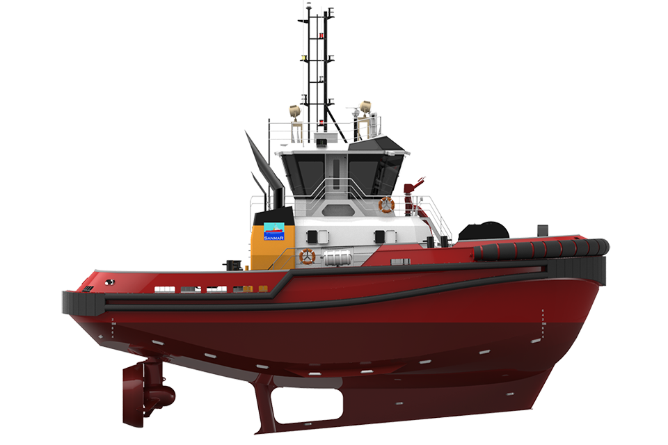 The RAmparts 2400 SX tug, a twin Z-drive, diesel-powered vessel, is expertly designed by Robert Allan Ltd. for optimal efficiency in ship-handling duties for sea-going ships. Being our best selling tug, the exclusive Sanmar design, 2400 SX, shares similarities with the ASD 24/45 & ASD 24/50 designs but boasts a 2-meter wider beam, enabling greater performance and stability with more powerful Caterpillar engines and larger Rolls-Royce Z-drives. The new versions offer varying bollard pull capacities of 60, 70, or 80 tons depending on the propulsion system chosen. The design emphasizes low-manning operation with advanced machinery automation, and the accommodations can be tailored to suit different crew sizes, with optional layouts for basic day boats or full accommodation for up to six people.